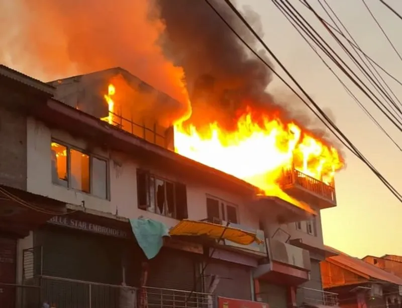 The blaze broke out around dawn in the congested commercial hub, quickly spreading from one establishment to neighbouring shops amid thick smoke and intense flames that triggered panic among shopkeepers and residents. Fire and Emergency Services teams from Bandipora and nearby stations were rushed to the scene along with support from local police and volunteers to tackle the inferno.